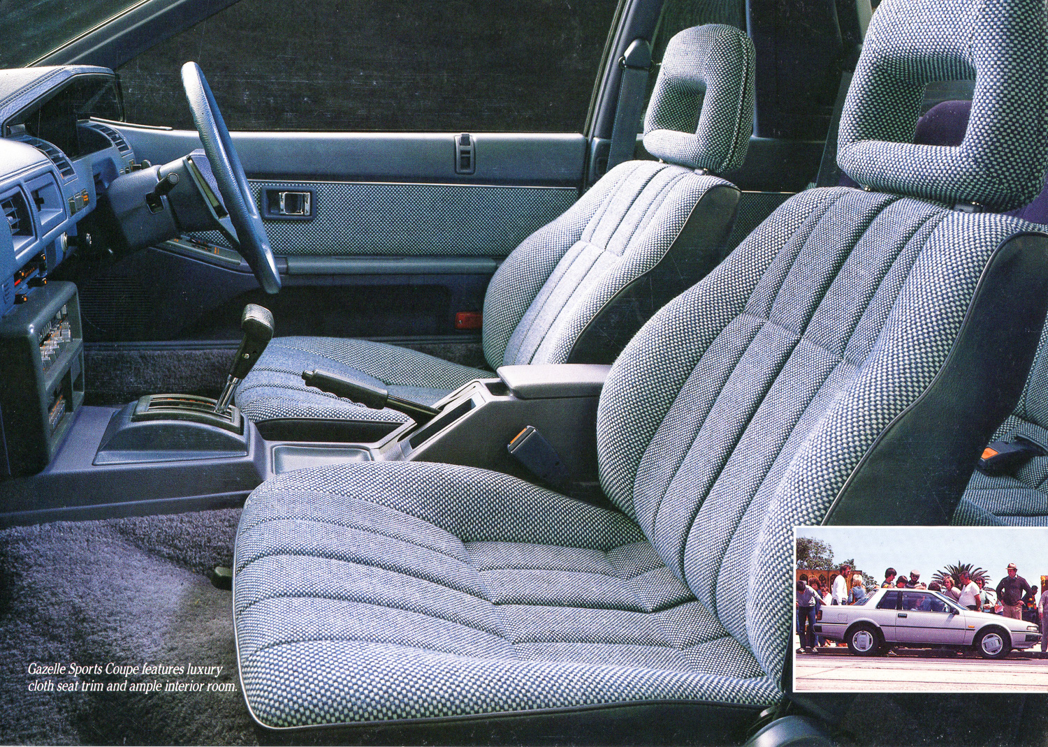 Gazelle Sports Coupe features luxury cloth seat trim and ample interior room. Nissan Gazelle Australia Brochure